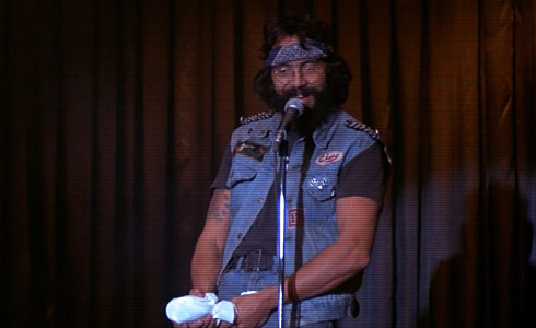 Neben dem legendären Auftritt von Michael Winslow folgt etwas später mit Paul Reubens ein weiterer Prominenter, der hier ein kurzes Gastspiel abliefert. Bekannt wurde er in den Achtzigern mit seiner Kunstfigur Pee-wee Herman, die er hier zum ersten Mal als erfolgloser Komiker mimt. So kommt er in der Comedy Show auch gar nicht erst dazu, sein albernes Programm aufzuführen – weil Chong ihm mit einem aus Serviette und Trinkglas gebauten „Schwanz“ die Show stielt. Paul Reubens ist übrigens der Typ, der nicht nur durch die nach diesem Film in Serie gegangene „Pee-wee Herman Show“ (1981–1984) in die Schlagzeilen kam, sondern auch, weil er sich anno 1991 in einem US-Pornokino einen runtergeholt hat. Und dabei auch noch von der Polizei erwischt und abgeführt wurde. Das ist einfach zu komisch, um wahr zu sein. Besonders, weil sich Frage stellt, warum das in US-Pornokinos überhaupt verboten war? Gut, ich war noch nie im Pornokino, aber warum geht man da sonst hin?